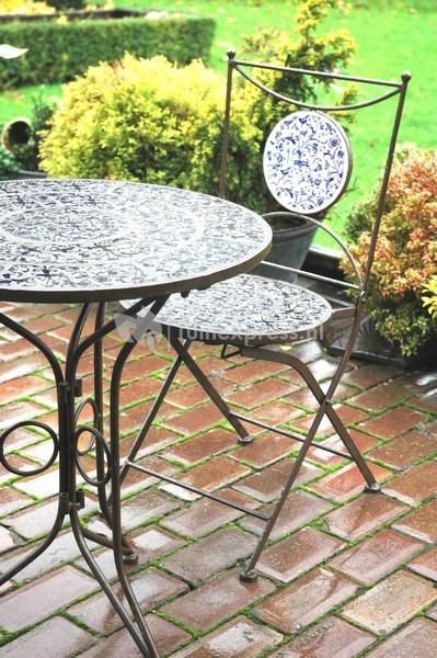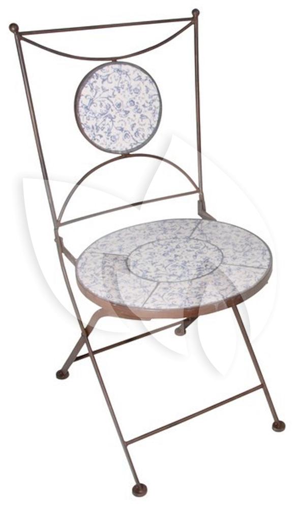 Bijzonder fraai vormgegeven tuinstoel gemaakt van keramiek. De tuinstoel heeft een sierlijke uitstraling met een blauwe barok print en werkt als een blikvanger op ieder terras. Het frame van de bistrostoel is gemaakt van roestbruin, authentiek smeedijzer waardoor de stoel zeer stevig is. De tuinstoel is perfect te combineren met de bistrotafel Aged Ceramic Blauw en vormt samen een mooie bistroset, door het compacte formaat is deze bistroset ideaal voor op het balkon of voor andere kleine ruimtes. Natuurlijk is hij ook gewoon op het terras te plaatsen of los in de tuin. Wanneer u de stoel niet gebruikt om te zitten, is hij ook om naar te kijken al een aanwinst voor iedere ruimte.