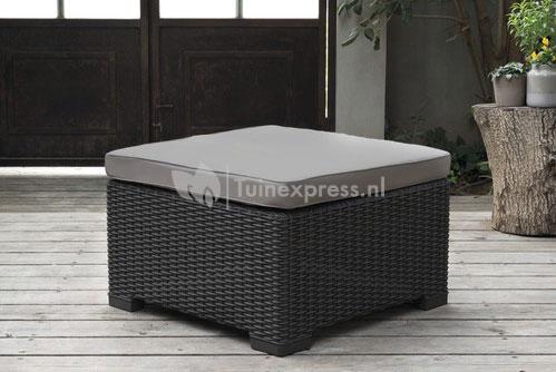 Een hocker is een musthave bij uw loungeset als u écht lekker languit wilt genieten. Maar wat als meerdere gezinsleden deze plaats als favoriet hebben bestempeld? Dan schaft u gewoon nog een losse hocker aan! Met een losse hocker creëert u zoveel loungeplaatsen als gewenst; u kunt de California hocker aan de verschillende zitplaatsen op de bank schuiven, maar ook aan de losse loungestoel. De California hocker wordt uiteraard met kussen geleverd om uw relaxmoment zo comfortabel mogelijk te maken. Krijgt u visite? Dan schuift u het voetenbankje los van het set waarmee u in een handomdraai extra zitplaatsen creëert. De hocker is van het welbekende onderhoudsvrije en weerbestendige wicker gemaakt; af en toe een doekje er overheen maar verder heeft u hier geen om kijken naar. Met het gezin ultiem genieten op dit loungeset? Schaf dan deze losse hocker aan om optimaal te relaxen!
