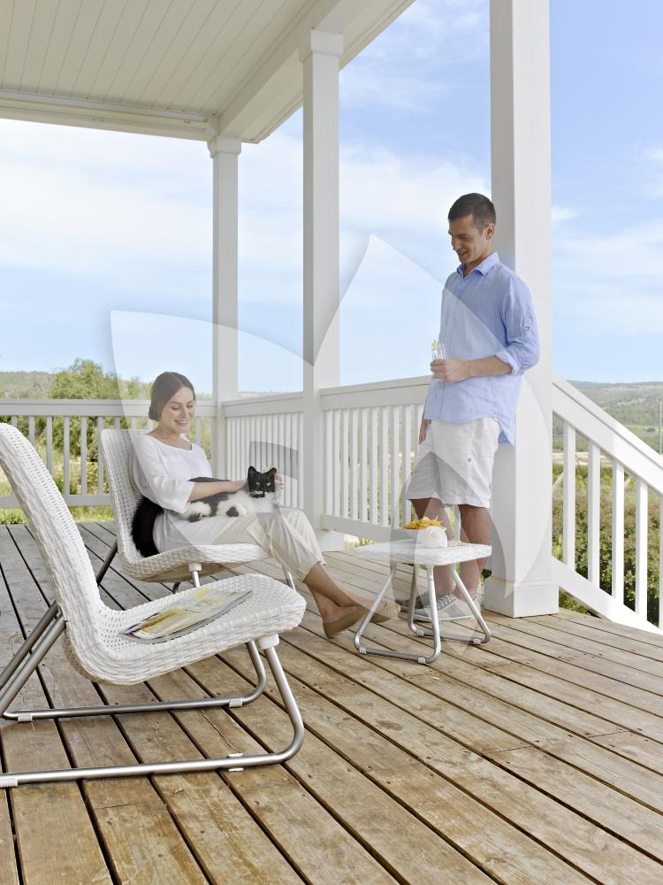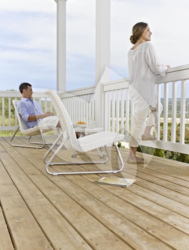 De hoogte van het tafeltje is afgestemd op de lage stoelen waardoor u uw verfrissende drankje en tube zonnebrand altijd binnen handbereik heeft. De loungestoelen en tafel zijn gemaakt van het welbekende en populaire kunststof wicker. Wicker is onderhoudsvrij en weerbestendig waardoor de loungeset het hele jaar door buiten kan blijven staan. Verder is wicker zeer stevig en toch licht van gewicht, u kunt de loungeset dus zeer eenvoudig verplaatsen. Een kopje koffie in de ochtend of een verfrissend drankje op een warme na-middag; met deze Rio balkon loungeset wit geniet u ieder moment van de dag van de zomer!