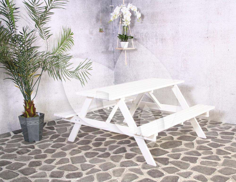 Deze trendy picknicktafel is een blikvanger in uw tuin. De tuintafel biedt plaats voor 4 personen en is ideaal om met het lekkere weer buiten te eten. De picknickbank heeft een houtdikte van 3 centimeter, wat de bank erg stevig maakt. De tafel heeft een FSC-keurmerk, wat wil zeggen dat het milieuvriendelijk hout is. Daarbij heeft het hout een witte laag met UV-blokker, dit zorgt dat de bank langer mooi blijft en zorgt voor extra duurzaamheid. Geniet van het mooie weer en eet gezellig buiten met het hele gezin.