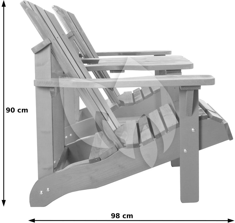 Deze prachtige tuinbank Jumbo Canadian is een aanvulling voor iedere tuin. Dankzij het unieke design zit de bank heerlijk en door de brede armleuningen kunt u altijd uw drankje kwijt. De grijze beits op de bank geeft het geheel een stijlvolle uitstraling en zorgt ook voor de nodige bescherming van de bank. De Jumbo Canadian tuinmeubelen worden gekenmerkt door het hoge zitcomfort. De zithoogte van de stoelen begint op 38 centimeter en loopt schuin af naar 28 centimeter, door deze unieke zithouding kunt u heerlijk loungen in de stoel. De tuinbank biedt plaats aan twee personen en geeft de mogelijkheid om op het tussenstuk uw hapjes en drankjes te plaatsen, zo kunt u de hele middag onbezorgd genieten van de warme zon.