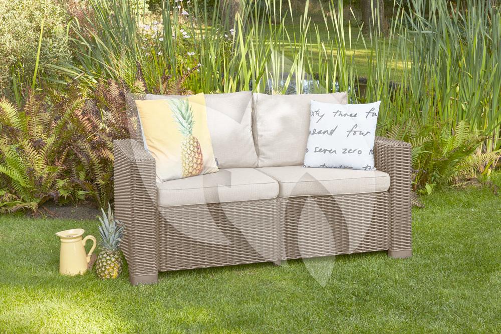 De California loungestoel 2 zits cappuccino is de perfecte accessoire op uw terras op een warme zomerdag. De loungestoel biedt plaats aan twee personen en biedt door de comfortabele kussens een optimaal zitcomfort. De loungebank heeft een mooie cappuccino kleur en lichte kussens, deze kleurencombinatie geeft het geheel een stijlvolle uitstraling waardoor hij een aanwinst is voor iedere tuin.