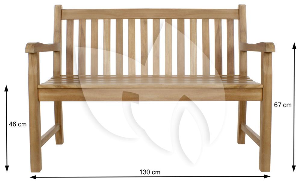 De tuinbank heeft een lengte van 130 centimeter en biedt hiermee plaats aan twee personen. De Alicante tuinbank is ook verkrijgbaar in de lengtematen 150 en 180 centimeter. Door de strakke uitstraling en het natuurlijke materiaal heeft de tuinbank een mooie uitstraling en staat hij als een mooie accessoire in uw tuin, op het terras of op het balkon.