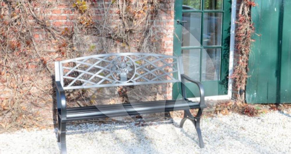 Deze mooie tuinbank met een klassieke vormgeving ...