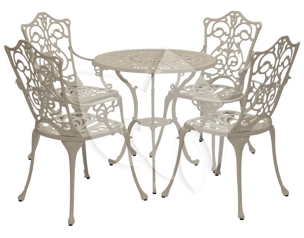 De Bistroset Antiek 5-delig - wit is een klassieke tuinset met een romantische uitstraling voor in iedere tuin of voor op het balkon. De Bistroset Antiek 5-delig - wit is gecoat, waardoor hij vriendelijk is in onderhoud en de levensduur optimaal is.