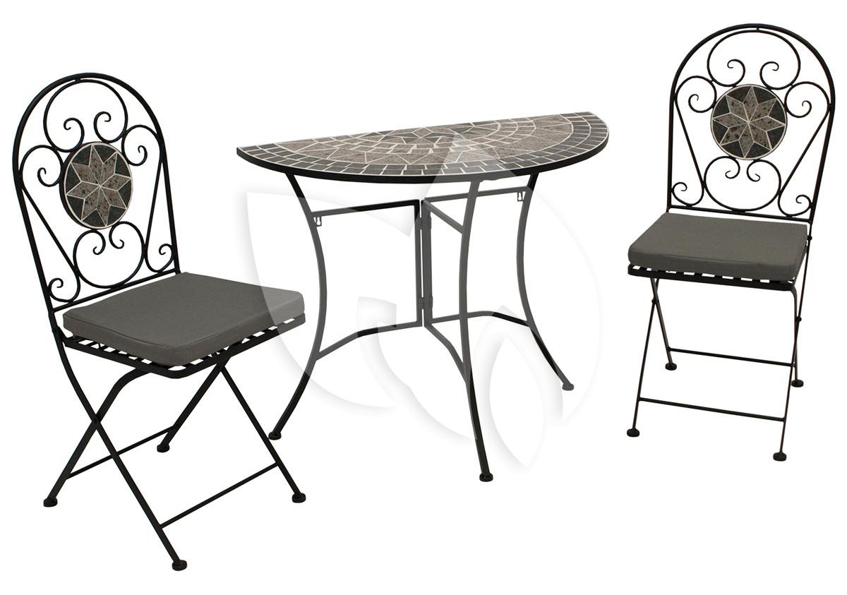 3-delige bistroset, halfrond, ijzer + mozaïek grijs