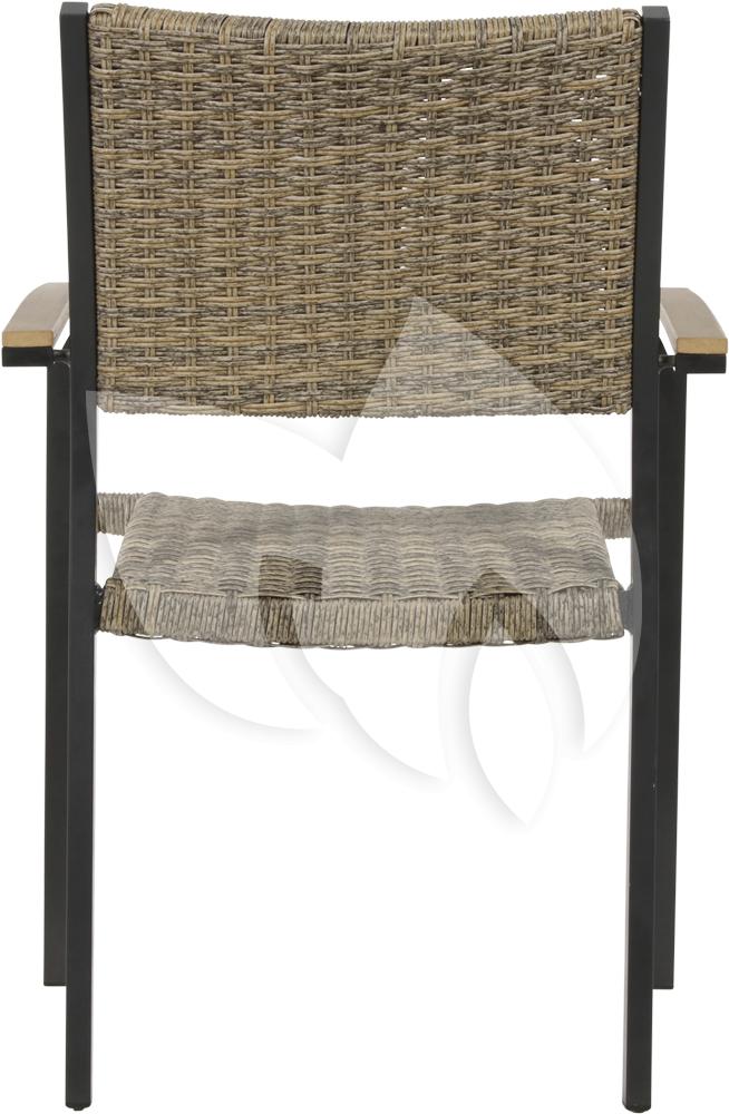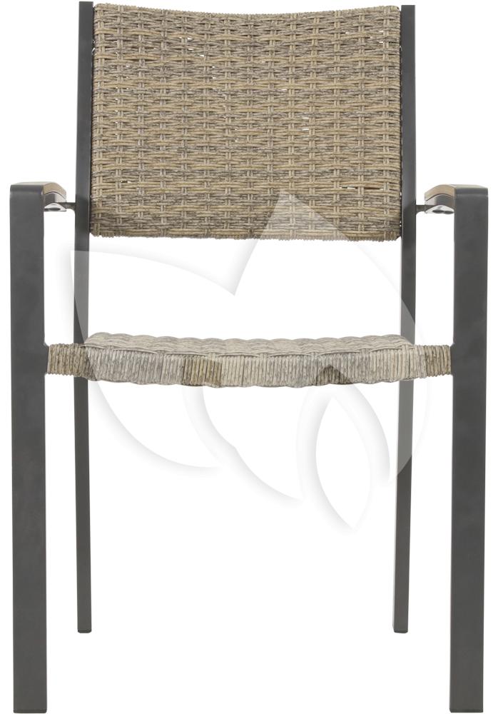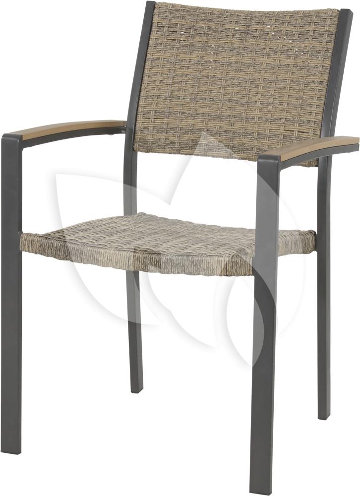 Wicker is een veelgebruikt materiaal bij tuinmeubels, het is sterk, makkelijk in onderhoud, tijdloos en op vele manieren te verwerken. Zoals bij deze stapelstoel die een zeer modern uiterlijk krijgt door het gebruik van wicker rond het aluminium frame. De kleur van het wicker sluit mooi aan bij de teak kleur van de polywood details waardoor de stoel ook een mooie combinatie is met de Arezzo tuintafels. Met deze Arezzo stapelstoel heeft u vele mogelijkheden om een tuinset naar eigen zin samen te stellen, want genieten doet u pas echt als u 100% tevreden bent!