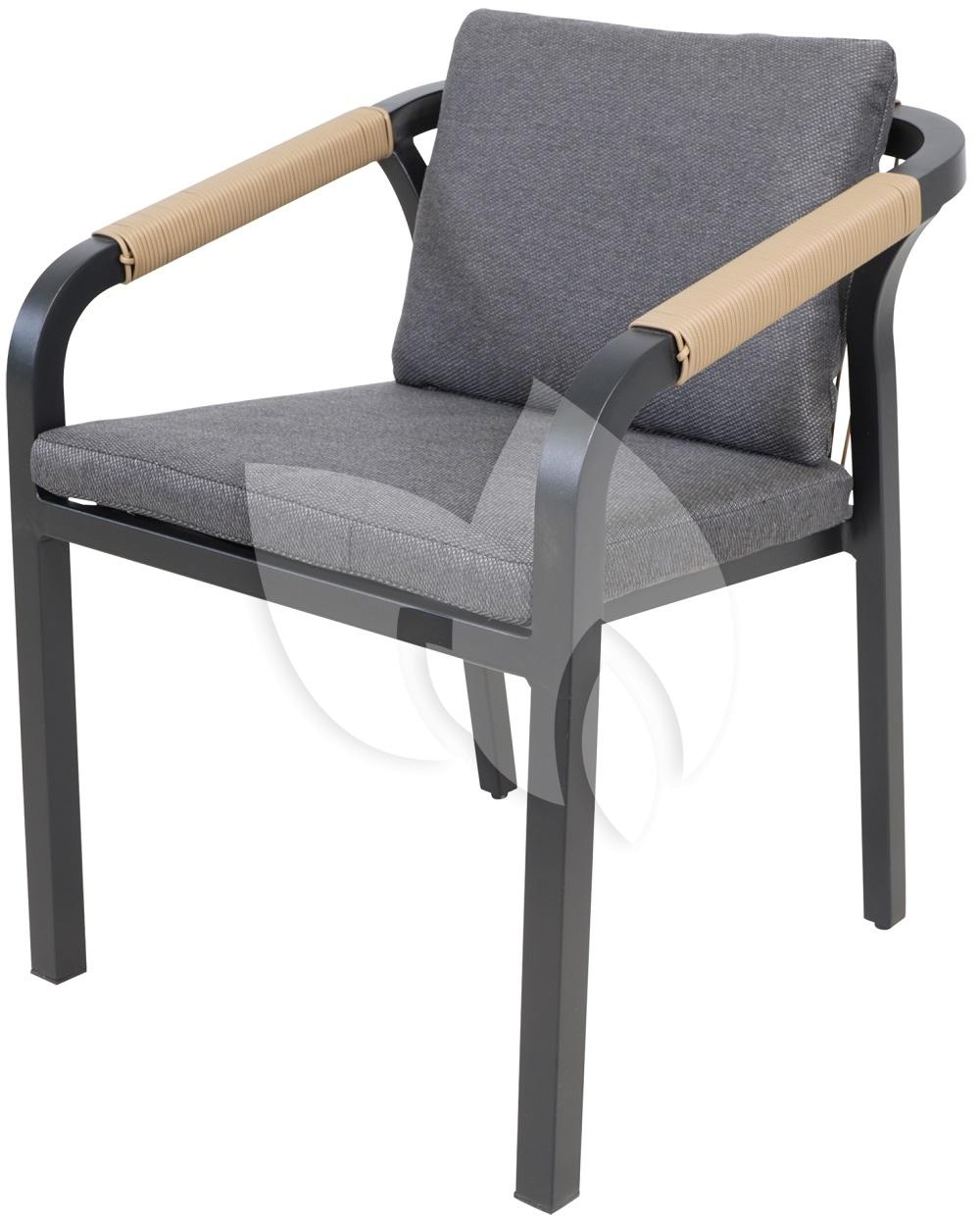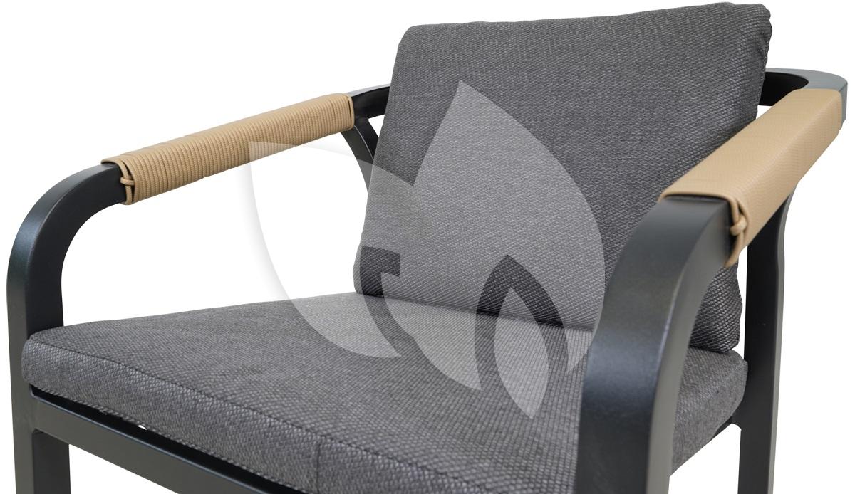 De bekleding van de zit- en rugkussens van deze stapelbare stoel is gemaakt van Olefin. Deze stof kenmerkt zich in zijn outdoor kwaliteit en fijne eigenschappen voor het gebruik in de tuin of op het balkon. Denk dan bijvoorbeeld aan eigenschappen zoals UV resistent, sneldrogend, kleurvast, slijtvast, ademend en sneldrogend. De kussens zijn voorzien van een stevige vulling.