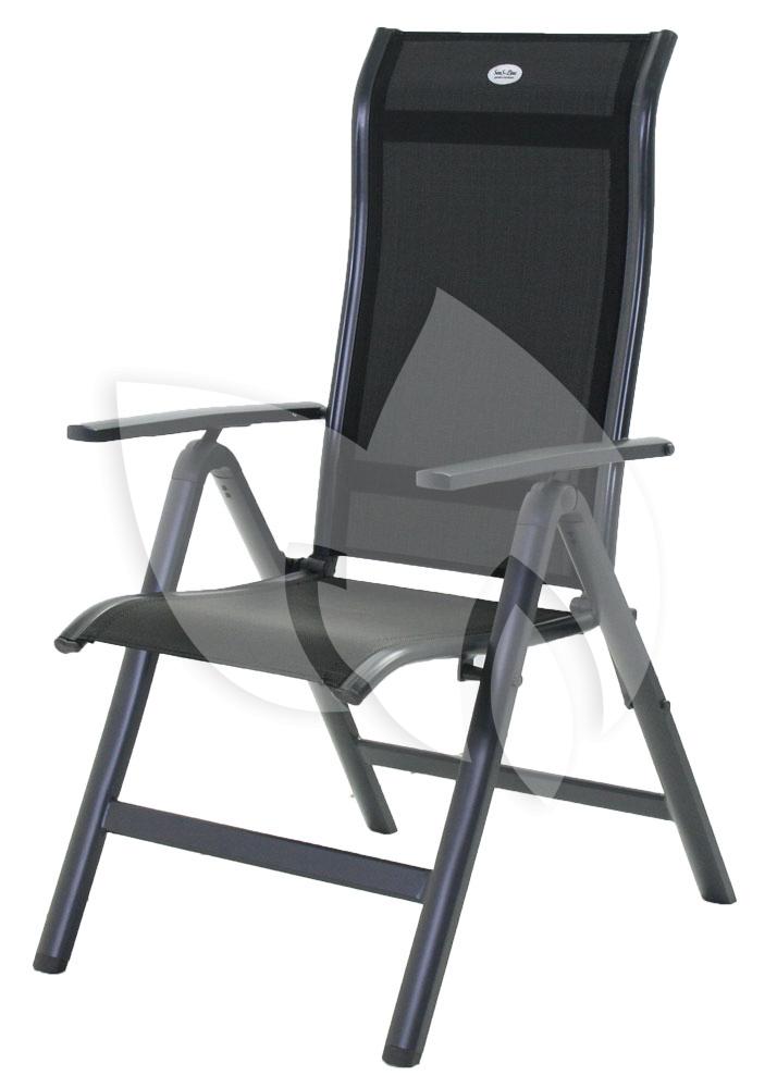 Dit is de Torino verstelbare tuinstoel van SenS-Line. Het is een comfortabele tuinstoel waarin je heerlijk kunt genieten in de tuin. De stoel is verstelbaar in verschillende standen om in de door u gewenste manier te kunne ontspannen. De zitting en de leuning van de tuinstoel zijn gemaakt van zwart textiel en heeft een ventilerende werking. Het frame van de tuinstoel is gemaakt van aluminium en heeft de kleur antraciet. Het is een lichtgewicht tuinstoel die gemakkelijk op te bergen is, want de tuinstoel is inklapbaar.