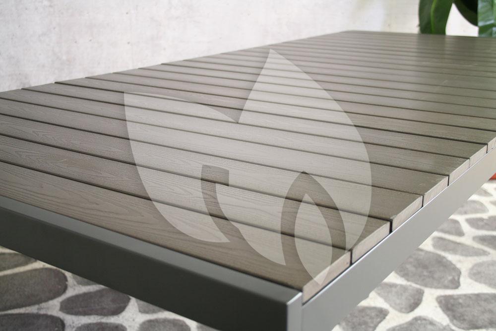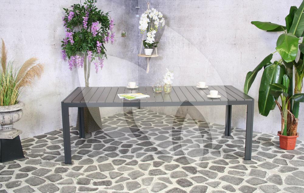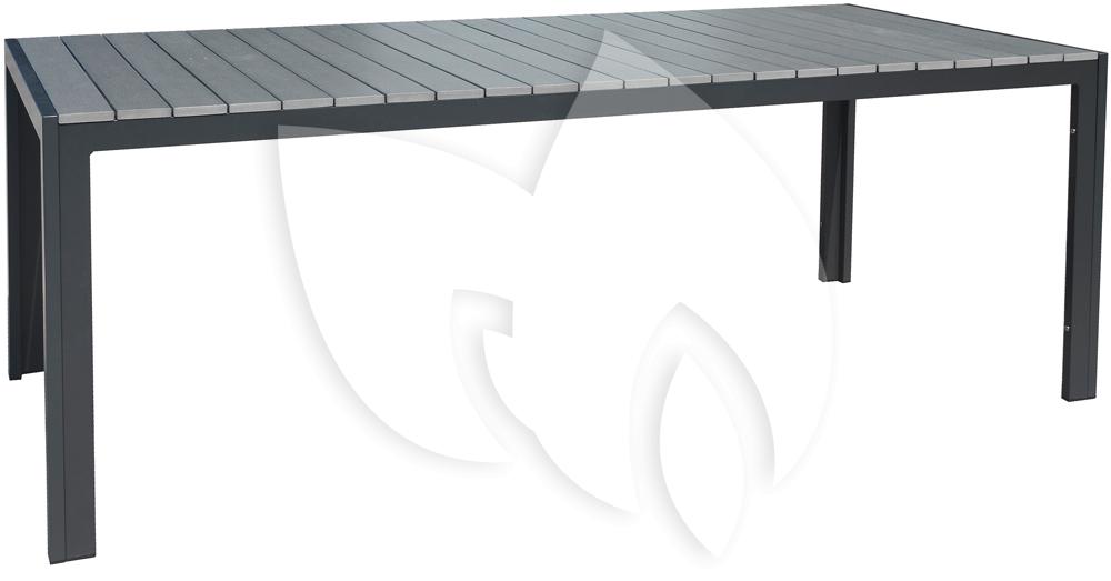 De kleur van het tafelblad van de tafel is grijs, het frame van deze tuintafel is daarentegen antraciet van kleur. De keuze om deze kleuren te combineren is zodat er een licht contrast ontstaat wat prettig oogt en waardoor dit product zeer gemakkelijk te combineren valt met ander meubilair.