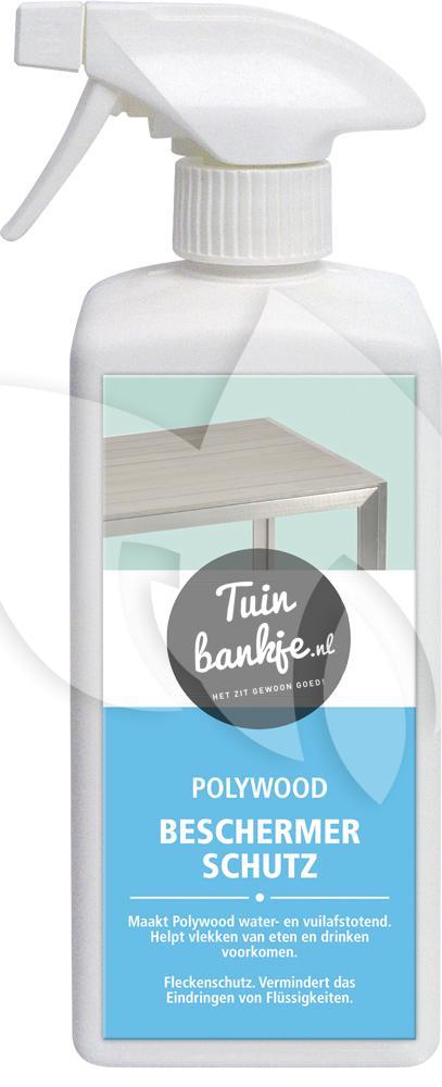 Breng na het reinigen een beschermlaagje aan op uw polywood meubels met deze beschermer. De beschermer zorgt voor een water en vuilafstotend laagje waardoor vocht makkelijker te verwijderen is van de tafel. De spray brengt u makkelijk aan met een spuitfles van 500ml. Schoonmaak artikelen dient u vorstvrij te bewaren.