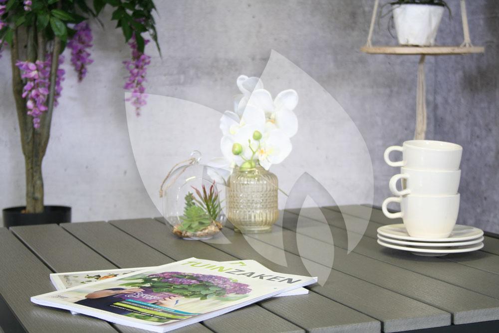 Deze tuintafel oogt heel prettig omdat het zeer lichte contrast van het antraciet van het frame tot het grijs van het tafelblad perfect samen gaan. Het frame van deze tafel is gemaakt van aluminium, hierdoor blijft dit product enigszins licht van gewicht. Vooral door het formaat van het tafeltje is een licht gewicht een belangrijke eigenschap. Zo kun je het product hierdoor gemakkelijk verplaatsen naar de plek waar jij hem passend vind wat vrijwel overal is omdat deze tuintafel in bijna elke hoek past door zijn kleine formaat.
