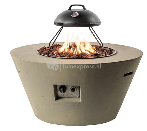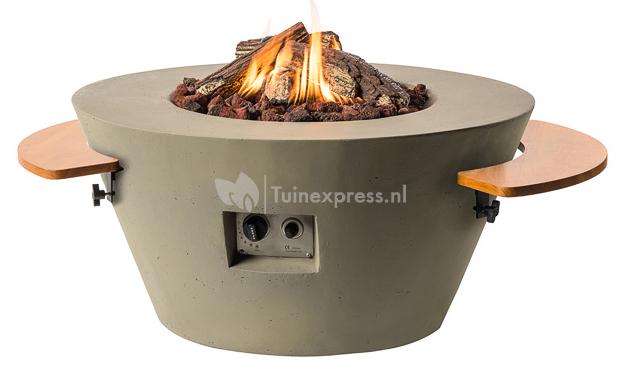 De Cocoon haard cone is een designtafel met een ingebouwde gashaard die zorgt voor een fijn loungevuur, zonder enige rook of rondspattende vonken. De RVS brander wordt mooi gecamoufleerd met de bijgeleverde lavastenen en houtblokken. De brander zorgt er met zijn vermogen van 19.5 kW voor dat de gewenste temperatuur snel wordt bereikt. Het vuur kunt u door middel van de elektrische ontsteking gemakkelijk ontsteken en de vlammen zijn traploos te regelen via de regelknop. De Cocoon haard cone is geproduceerd uit composiet in de kleur taupe. Composiet is een stevige materiaal dat bestand is tegen extreme kou en warmte. Wanneer het winter wordt hoeft u de vuurtafel niet direct in de schuur op te bergen maar kunt u hem zorgeloos, het liefst wel met beschermhoes, buiten laten staan.