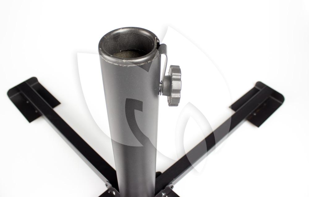Deze zwarte metalen kruispoot is voor zowel een stokparasol als een zweefparasol te gebruiken. Op het frame kunt u tegels plaatsen, zodat het kruissysteem niet meer zichtbaar is. Een functionele parasolhouder voor op uw terras! U zult dus geen last meer hebben van een hinderlijke parasolvoet! Te gebruiken voor een zweef- of stokparasol met een maximale stokdiameter van 50 mm. (verstelbaar tot 50 mm)