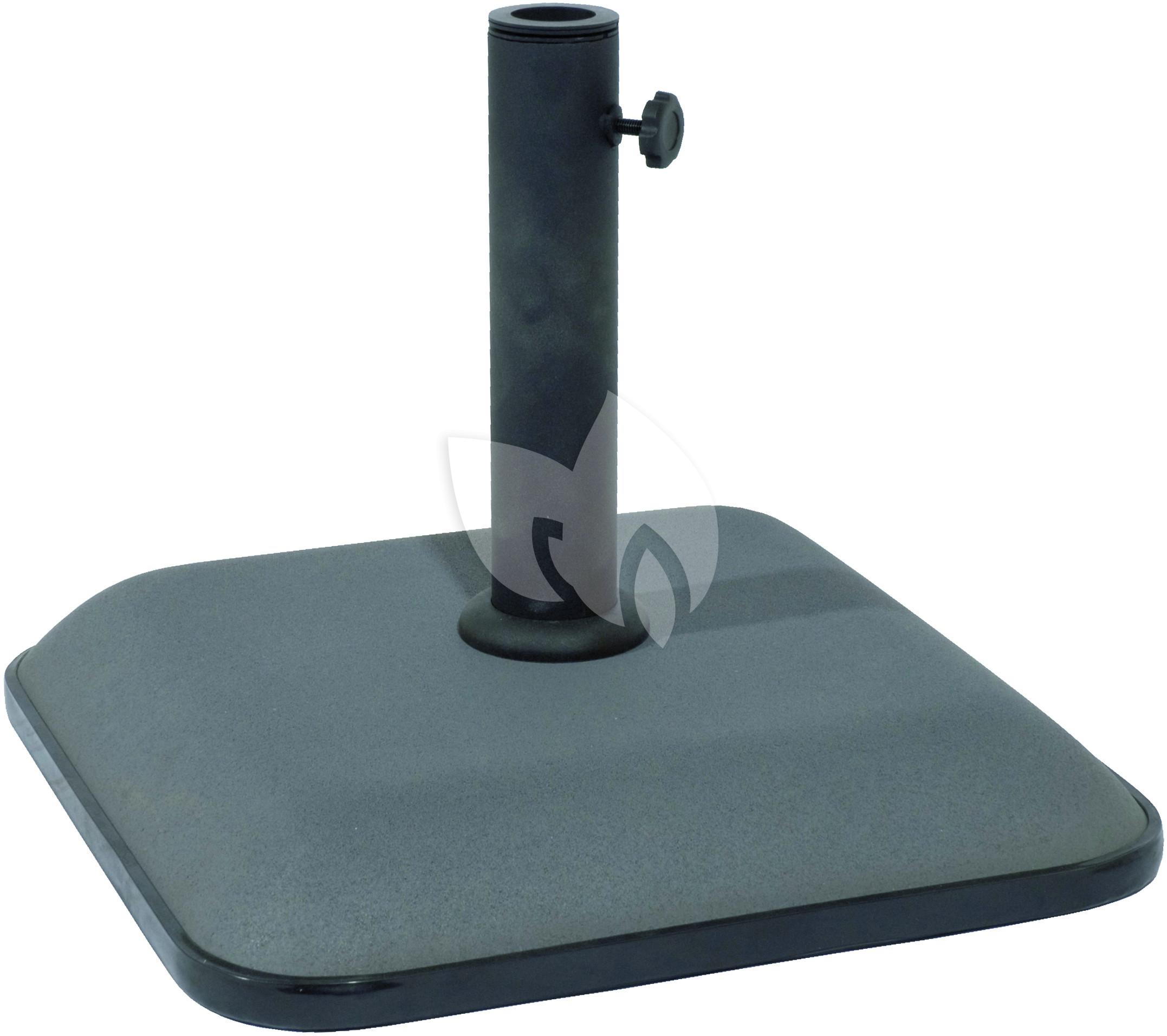 De parasolvoet beton vierkant 25 kg grijs is geschikt voor parasols met een stokdiameter tussen de 28 en 48 millimeter. Middels de draaischroef kan de stok stevig vastgezet worden. De parasolvoet heeft een gewicht van 25 kg en is hiermee geschikt voor parasols met een diameter van maximaal 250 centimeter.