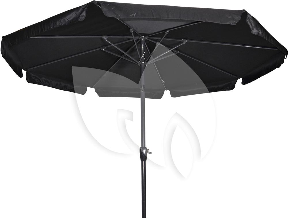 Gebruik deze prachtige stokparasol Libra 300 cm zwart om een koel plekje in uw tuin of op uw terras te creëren. De parasol heeft een diameter van drie meter waardoor hij voor een groot schaduwoppervlak zorgt, tevens zorgt de volan ervoor dat u geen last heeft van de laagstaande ochtend of avondzon. Verder is de parasol knikbaar waardoor u hem altijd naar de zon toe kunt knikken, zo bent u altijd verzekerd van een aangename schaduwplek.