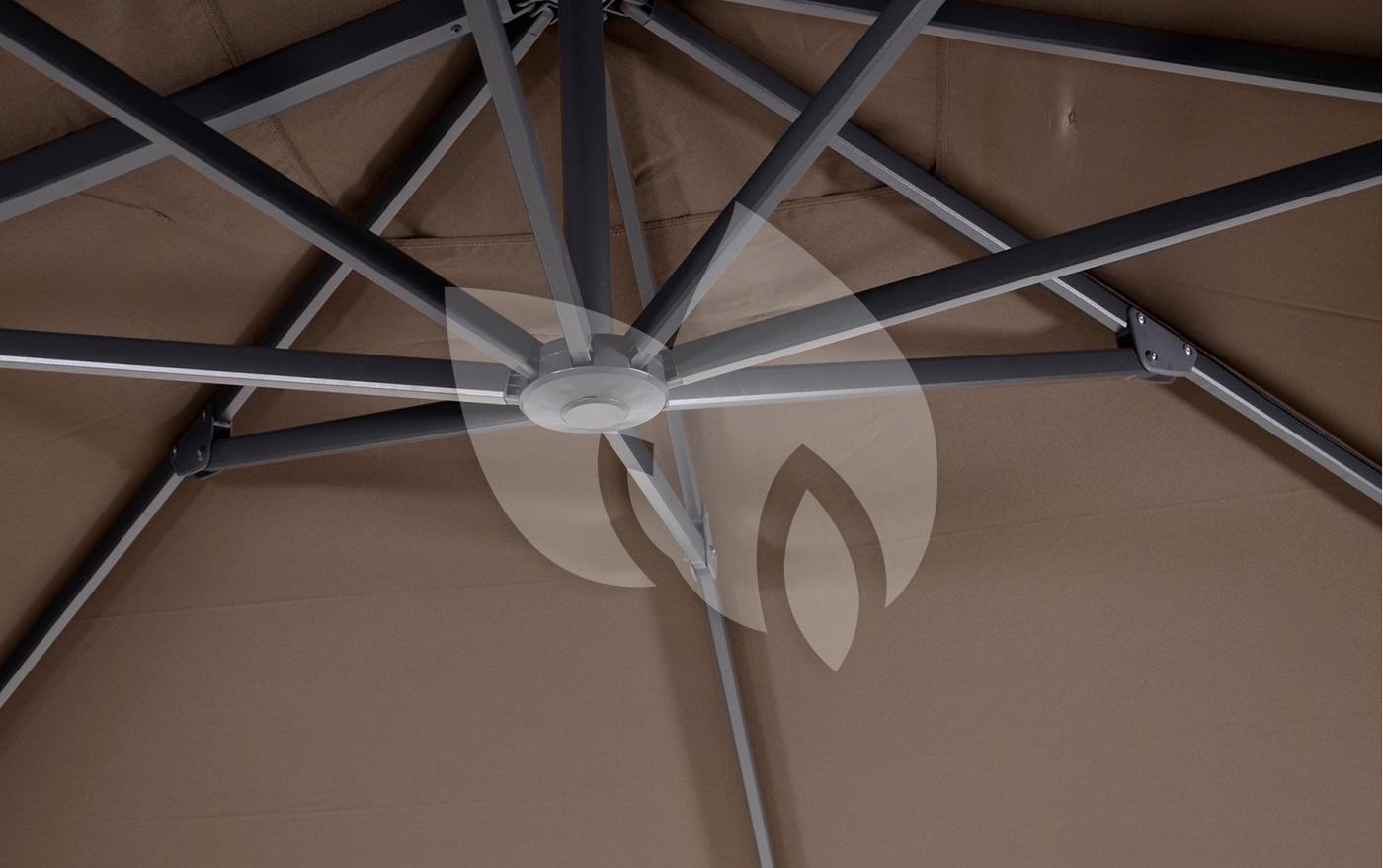 De grote rechthoekige Taurus zwevende parasol zorgt voor een oase aan rust in jouw tuin. Deze rechthoekige zwevende parasol heeft een afmeting van 300x400 cm en is taupe van kleur. Geniet van schaduw en verkoeling met deze beresterke Taurus rechthoekige parasol.