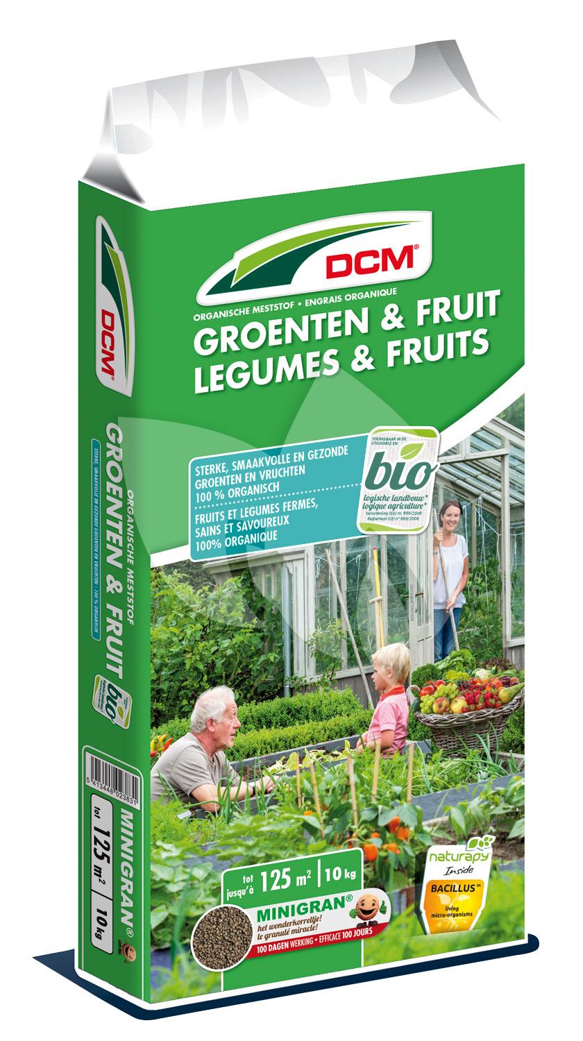 DCM Mest voor groenten en fruit is een alles-in-één meststof geschikt voor de biologische groentetuin. Bij deze mest komen de voedingselementen geleidelijk vrij voor een evenwichtige groei en kwaliteit van de groenten. DCM Mest voor groenten en fruit is een energiebron voor vele nuttige bacteriën welke het humusgehalte verhogen. Bovendien veilig voor plant en milieu en kan tot kort voor het zaaien of planten gebruikt worden.
