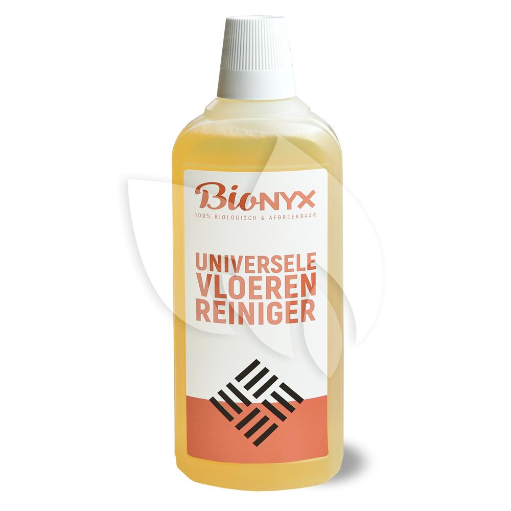 Universele Vloerenreiniger van BIOnyx voor dagelijkse of periodieke reiniging van alle soorten vochtbestendige harde vloeren. Dit natuurlijke schoonmaakmiddel zorgt voor streeploze schone vloeren.