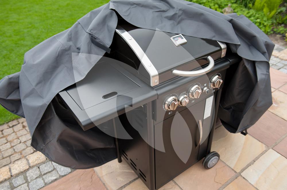 De afdekhoes is vervaardigd uit het materiaal polyethyleen in een grijze kleur. De afdekhoes is uv-bestendig en heeft een dichtheid van 100 g/m². De hoes is aan de onderkant voorzien van ogen en een nylonkoord waardoor u de hoes eenvoudig over uw barbecue kunt aanbrengen en strak kunt trekken. De beschermhoes is verkrijgbaar in twee verschillende uitvoeringen, beide geschikt voor de gasbarbecue.