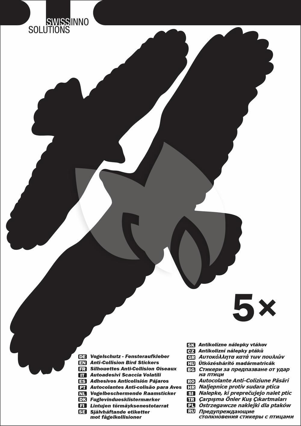Deze raamstickers schrikken andere vogels af op een plek waar u ze niet wilt hebben. De stickers kunnen ook worden gebruikt op een plek waar het glas nauwelijks te zien is. Zo geeft u aan dat er glas zit, wat weer voorkomt dat vogels tegen uw ramen aanvliegen. De stickers worden verpakt in een set van vijf stuks.