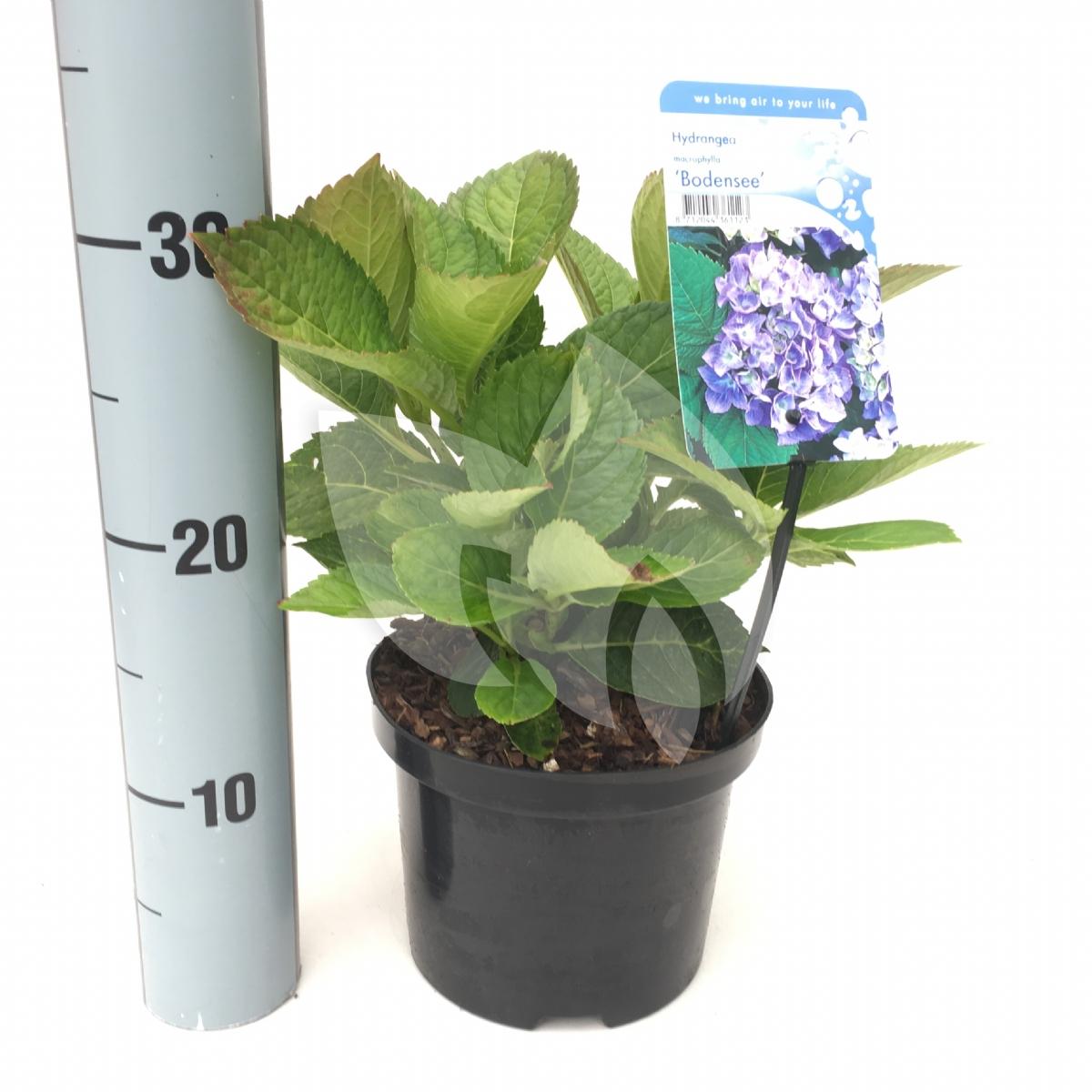 Deze compact groeiende hortensia bloeit met prachtige lichtblauwe of lichtroze bloembollen. De kleur van de bloemen is afhankelijk van de grond van zijn standplaats, de Bodensee is zeer gevoelig voor de zuurtegraad van de grond. De hortensia staat niet graag in de felle middagzon, in de ochtend en namiddag kan hij wel wat zonneschijn verdragen. Een hortensia is een zeer populaire toevoeging aan de tuin, zo ook de Bodensee, een prachtig rijkbloeiende en eenvoudig te combineren boerenhortensia.