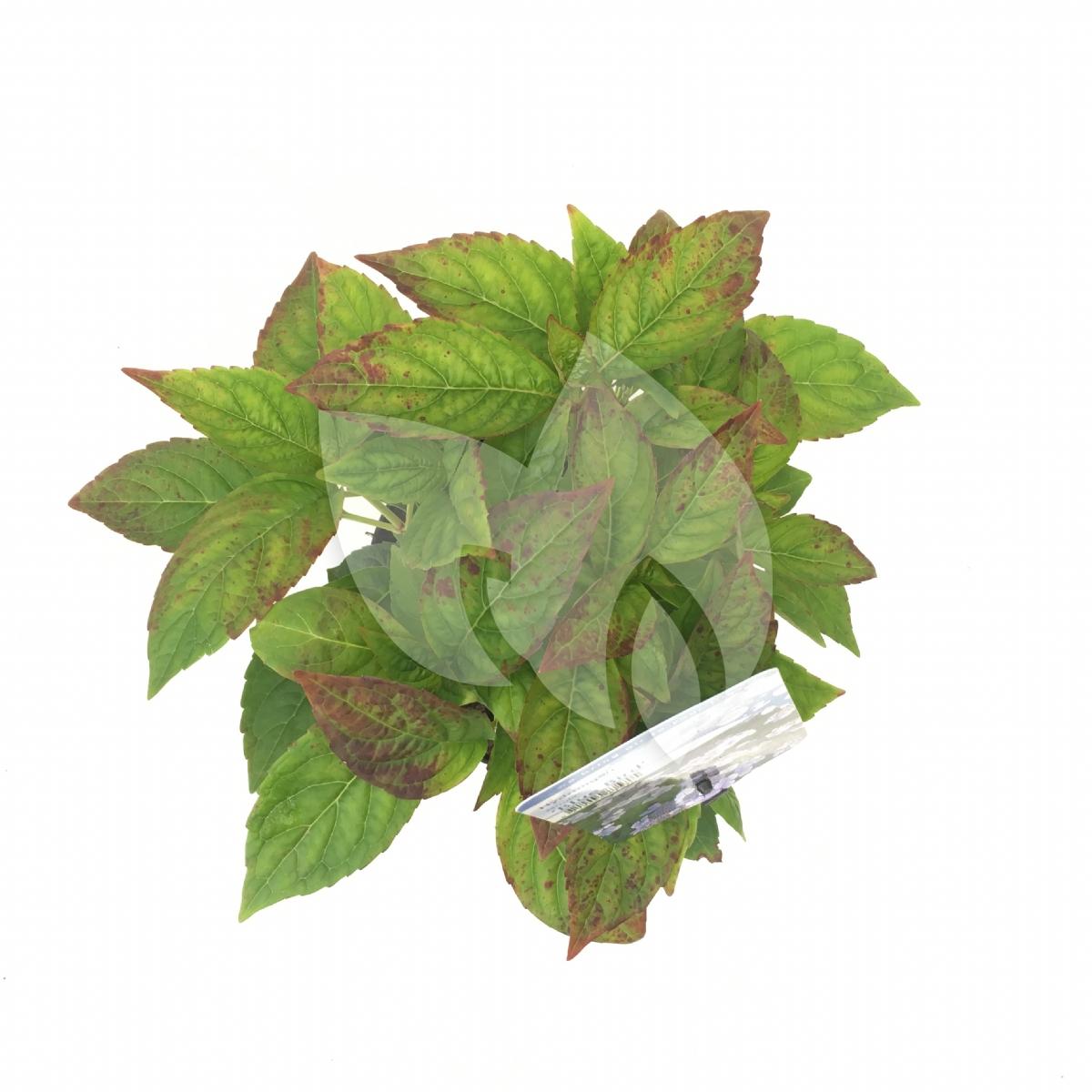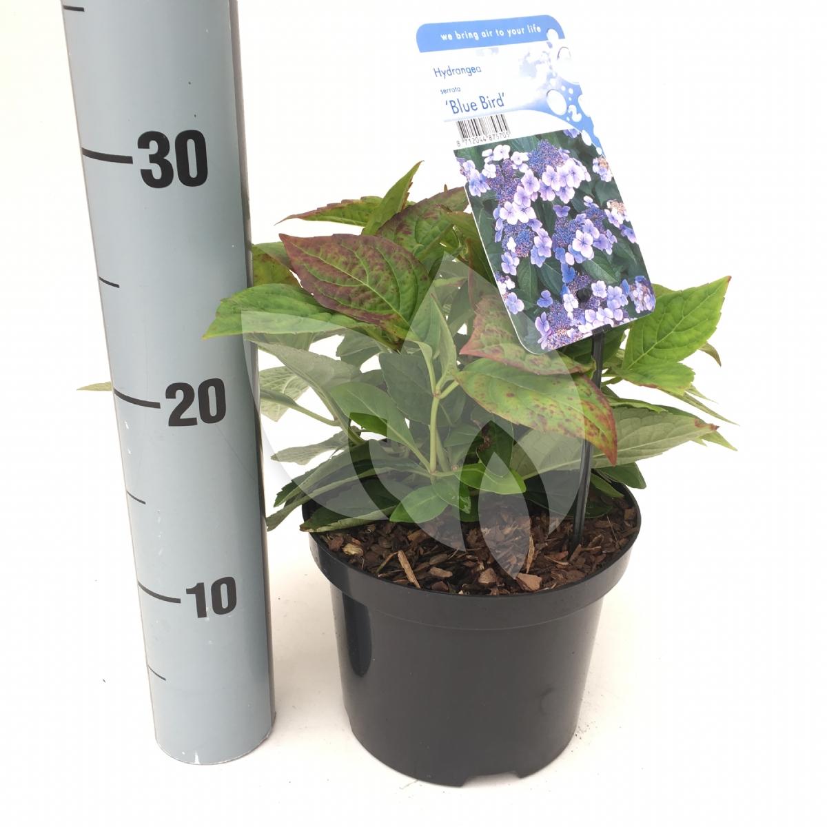 Japanse berghortensia “Blue Bird” is een zeer verfijnde hortensia. De hortensia bloeit met bloemschermen in blauw of roze tinten. De Blue Bird is een echte schermhortensia, de bloemschermen bestaan uit vele kleine bloemetjes omringt door enkele grote randbloemen. De randbloemen zijn in het begin van de bloeiperiode meestal wit, daarna nemen ze net als de bloemetjes in de kern een roze of blauwe kleur aan, afhankelijk van de grond waar de hortensia op staat. Het blad heeft extra sierwaarde door rode bladnerven en randen, het groene blad zal richting de herfst een meer rode kleur krijgen.