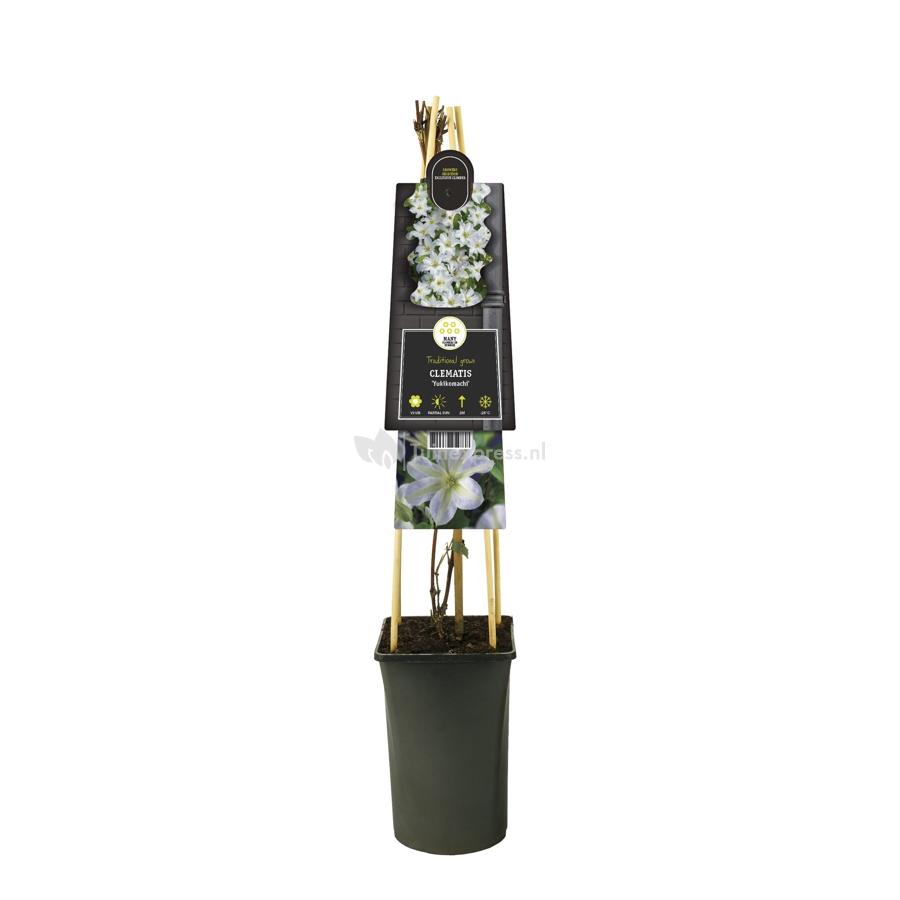 Een echte parel in uw tuin is deze blauwe bosrank. De lichtblauwe blaadjes van de bloem vervagen naar het midden toe, waar een geel/groene streep in het midden over het blad loopt. Kiest u deze plant specifiek om de bijzondere kleurschakering? Plaats de plant dan niet in direct zonlicht; de bloemen zullen hierdoor verkleuren en van de blauwtint blijft nog weinig over! Wanneer u de plant kunt plaatsen op een halfschaduw plaats, bent u nog steeds verzekerd van een uitbundige bloei en blijft de kleur van deze prachtige bloemen behouden.