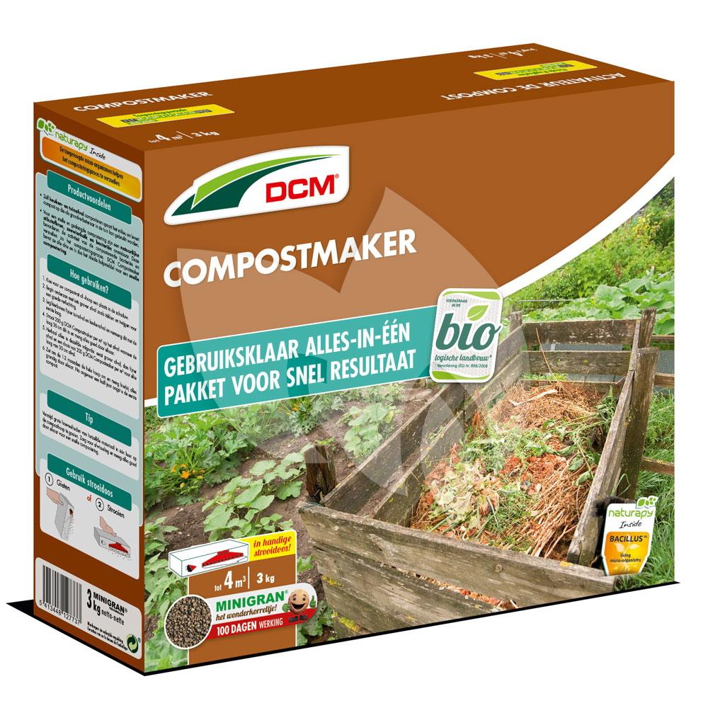 DCM Compostmaker alles-in-één is een gebruiksklaar product op basis van fossiele zeewierkalk, bacteriën en met een organische stikstofbron. Deze drie elementen zijn onmisbaar om de activiteit van de composterende bacteriën te stimuleren en zo het composteringsproces te versnellen. Met DCM Compostmaker alles-in-één verkrijg je snel resultaat.
