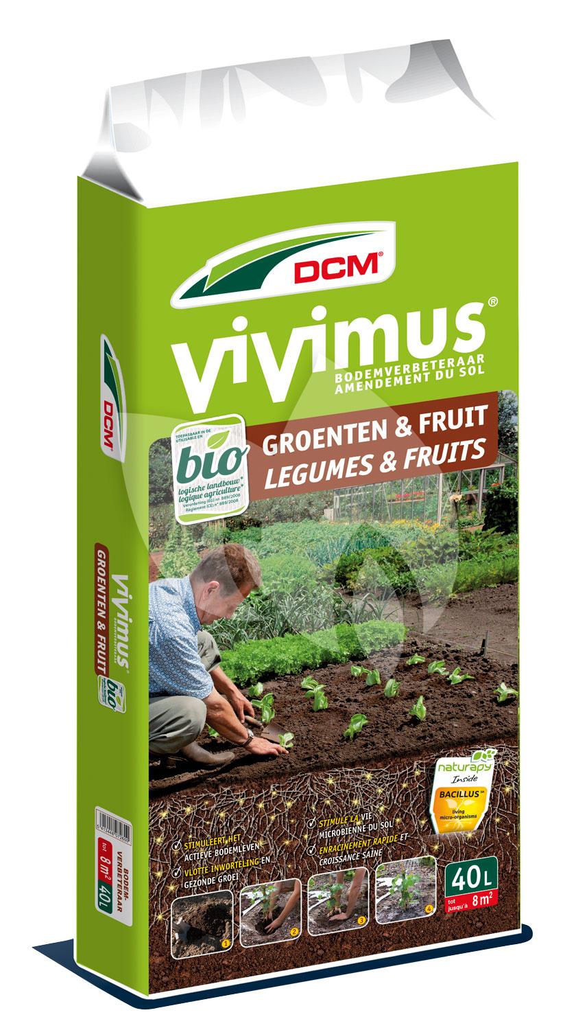 DCM Vivimus bodemverbeteraar voor groenten en fruit is een bodemverbeterend middel die net geplante groenten, fruit en kruiden beter doen inwortelen. Dankzij de grove structuur van deze grondverbeteraar komt er genoeg lucht in de grond waardoor jonge wortels gemakkelijk vocht kunnen opnemen. DCM Vivimus bodemverbeteraar voor groenten en fruit zorgt tevens voor een welvarende, humusrijke grond.