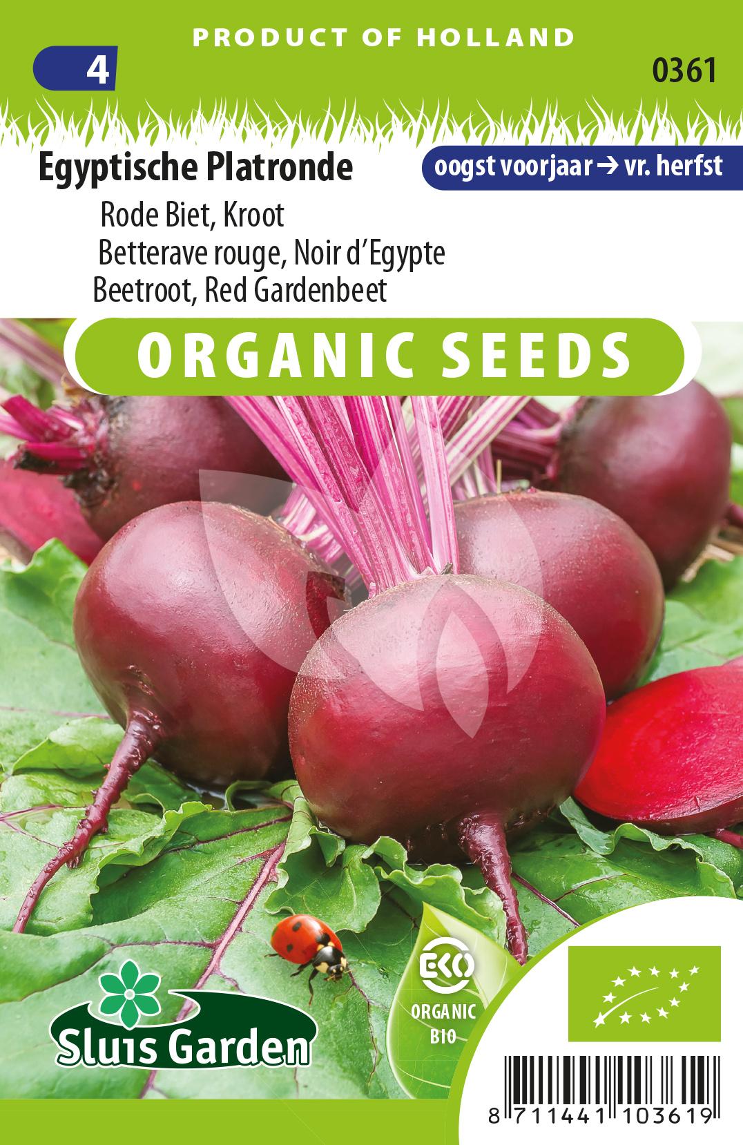 De Egyptische Platronde staat bekend vanwege zijn vroege teelt, snelle groei en prima smaak. De Egyptische Platronde is een vroege zaai- en vroege oogstbare biet met een wat afgeplatte vorm en dieprode kleur. Deze rode bieten, ook wel kroten genoemd, hebben een zacht en smakelijk vruchtvlees en voegen een leuk kleuraccent toe aan uw maaltijd!