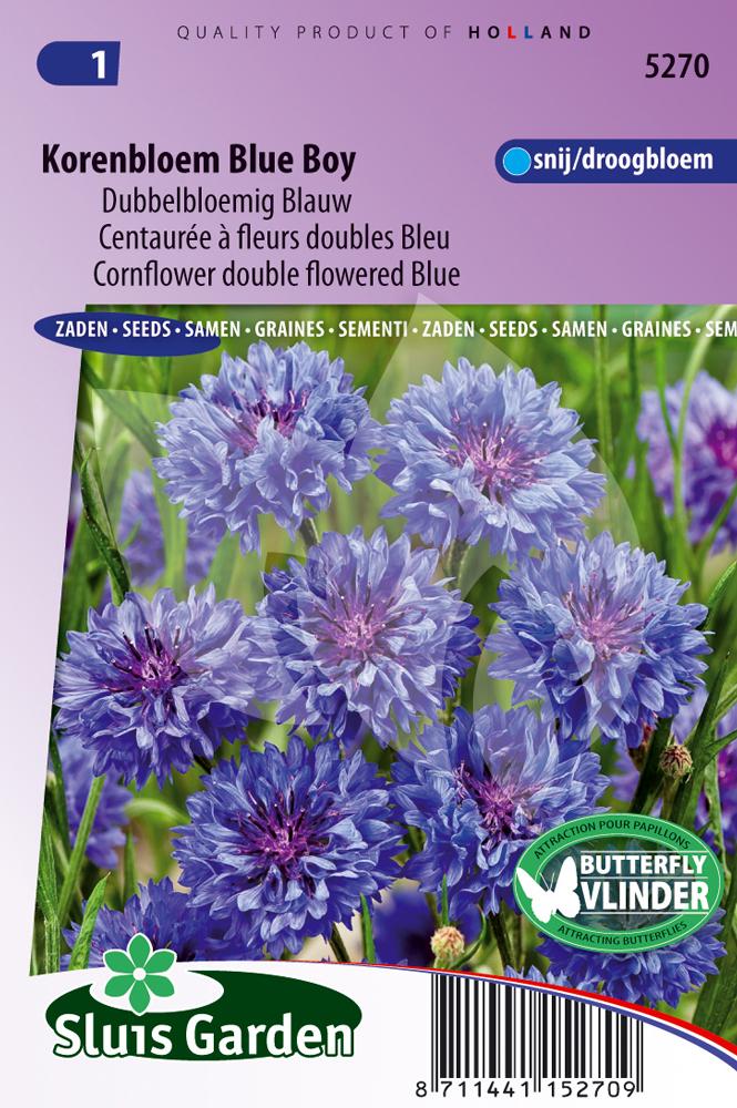 De korenbloem Blue Boy is een eenjarige plant die ongeveer een hoogte zal bereiken van 80 cm. De korenbloem zal het mooist tot zijn recht komen in een grote groep en kan maar liefst maandenlang bloeien als de verwelkte bloemen tussendoor geregeld weggehaald worden. De korenbloem kunt u bij voorkeur het beste direct ter plaatse zaaien in de vollegrond en even later uitdunnen. De bloem is namelijk niet gesteld op verplanten.