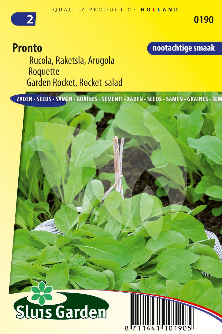 De Pronto (Eruca sativa) wordt naast rucola wordt ook wel raket of raketsla genoemd. Deze verbeterde versie van de gewone Rucola heeft een dieper en fijner ingesneden blad met een nootachtige, prettig pikante en licht peperige smaak. Erg lekker door een salade of op een broodje kaas!