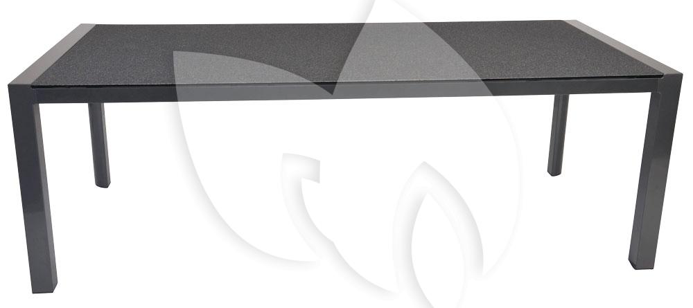 Kom gezellig met het hele gezelschap bij elkaar op een zomerse dag aan deze mooie tuintafel Mojito Negro 220 cm! De tuintafel heeft een lengtemaat van 220 centimeter waardoor hij voldoende plaats biedt aan zes stoelen, mocht uw gezelschap groter worden kunt u altijd extra stoelen aanschuiven aan de koppen. De tafel heeft zijn prachtige uiterlijk te danken aan het antracietkleurige, spraystone tafelblad. Spraystone is een duurzaam en slijtvast materiaal welke qua gevoel en uiterlijk niet onder doet voor natuursteen. Het geïmiteerde materiaal maakt de tuintafel prachtig om te zien, en toch betaalbaar.