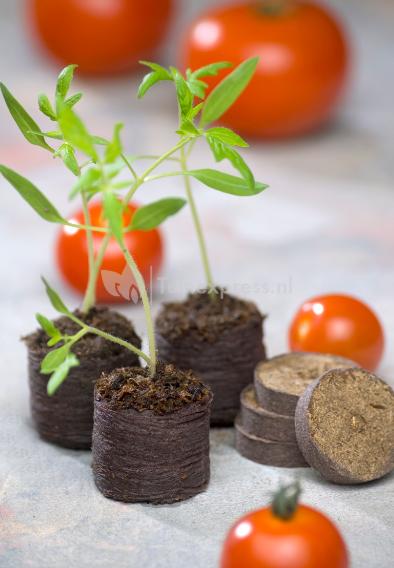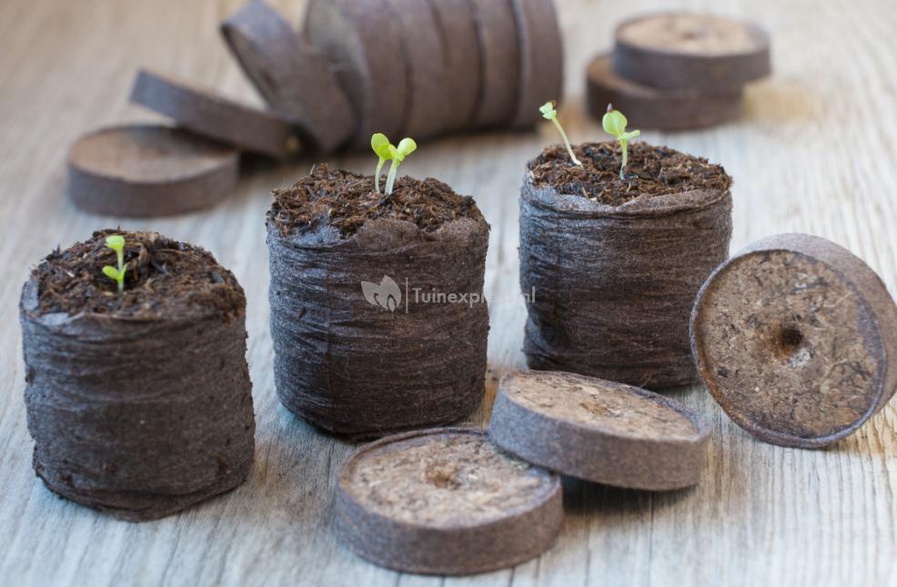 De turftabletten zijn samengeperst en door toevoeging van water zullen ze opzwellen tot een handig kweekpotje dat gebruikt wordt bij het zaaien en verspenen.