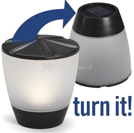 • Overdag opladen met de zonnepaneel naar boven, ’s avonds omdraaien voor licht.