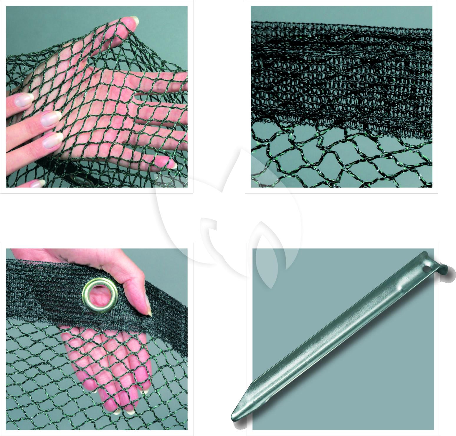 Hoogwaardig fijnmazig vijvernet inclusief grondpennen. Het vijvernet is voorzien van metalen ringen in de randen en wordt geleverd inclusief handige draagtas.