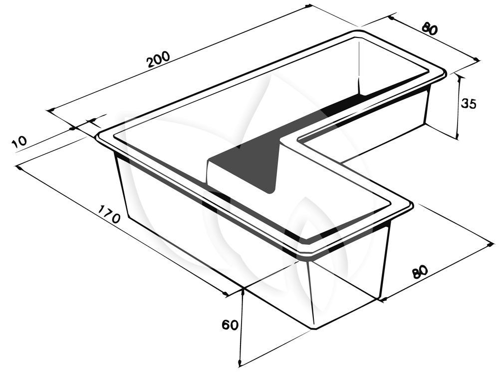 Een absolute topper in de vijverwereld is deze L-vormige voorgevormde vijver. De vijver heeft een ondieper gedeelte welke u kunt gebruiken als moerasgedeelte. Een L-vormige vijver is een prachtige toevoeging in ieder soort tuin, of dit nou een rotstuin of een tuin met strakke vormen is. Deze vijver zal een absolute eyecatcher in uw tuin worden!