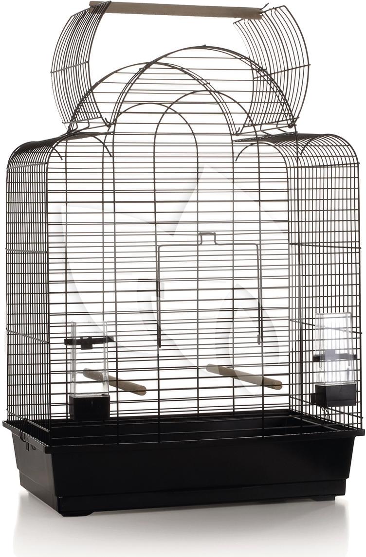 Vogelkooi Big Sonia, open model, is een leuke vormgegeven vogelkooi, welke makkelijk is schoon te maken door de uitschuifbare lade. Tevens kan het dak worden opengezet om zo een vrije zitplaats voor uw vogel te creeren. Inclusief zitstokjes en drink en voederbakjes. Te combineren met de metalen vogelkooistandaard Bob 3 en Jason. Kleur: zwart.