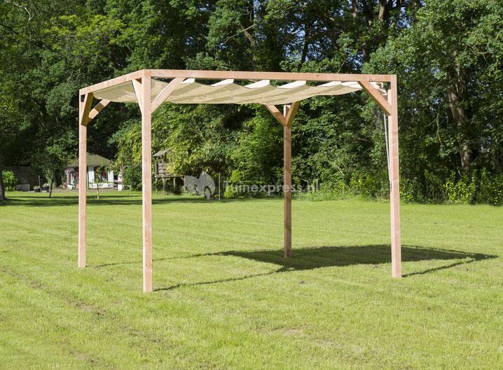 Vrijstaande pergola hout 3.7x5 meter met gebroken wit harmonicadoek