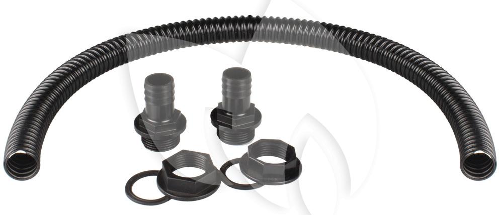 De waterton verbindingsset bestaat uit de verbindingsslang en alle hulpstukken die nodig zijn om de slang zo eenvoudig mogelijk te installeren.