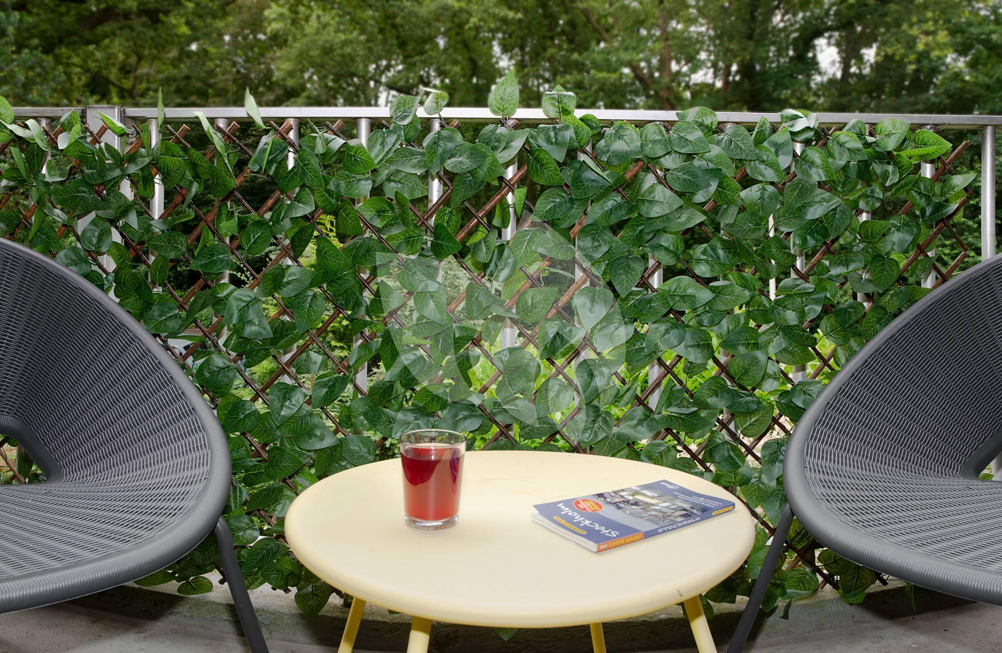 Verstelbaar balkonscherm met kunststof laurierblad - max. breedte 180 cm