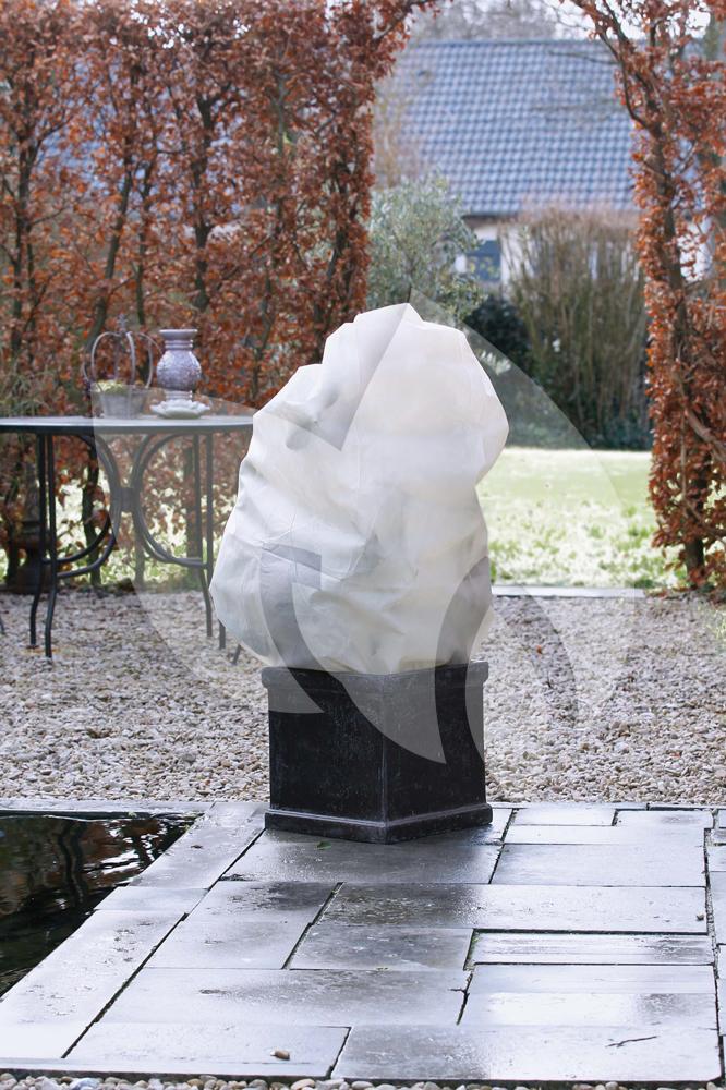 De winterafdekhoes is gemaakt van niet-geweven polypropyleen en heeft een dichtheid van 50 g/m². De afdekhoes is beige van kleur en bestand tegen uv-stralingen. Het niet-geweven polypropyleen materiaal zorgt voor een goede bescherming van uw plant en zorgt er tevens voor dat water, lucht en licht worden doorgelaten zodat de plant wel kan blijven ademen. De opening van de hoes is voorzien van een handig aantrekkoord waardoor de hoes snel om uw plant te bevestigen is. De beschermhoes is verkrijgbaar in drie verschillende afmetingen.