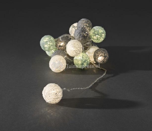 Het lichtsnoer is voorzien van 16 cotton balls met een diameter van 3,5 centimeter. De cotton balls hebben lichtblauwe, grijze en witte kleuren en in de bollen zitten led-lampjes die voor een sfeervol, warmwit licht zorgen. Het snoer heeft een totale lengte van drie meter en is daarnaast voorzien van drie meter aansluitkabel. Door het lange snoer kunt u de verlichting op iedere gewenste plaats plaatsen; in een versierde vaas, op een schaal of op een feestelijk gedekte tafel, overal zorgt het snoer voor een fijne sfeer!