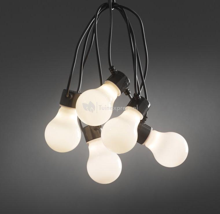 De feestverlichting is voorzien van LED-lampjes met een opaal, peerachtige vorm. De lampen zorgen voor een sfeervol, gezellig warmwit licht. Doordat de lampen zijn voorzien van LEDs is de verlichting ook nog eens zeer energiezuinig en hebben ze een lange levensduur. Dankzij de lange lengte van het aansluitsnoer kunt u gemakkelijk een stopcontact bereiken en de verlichting overal gebruiken. Het partysnoer is voorzien van vaste lampen, deze zijn niet vervangbaar.