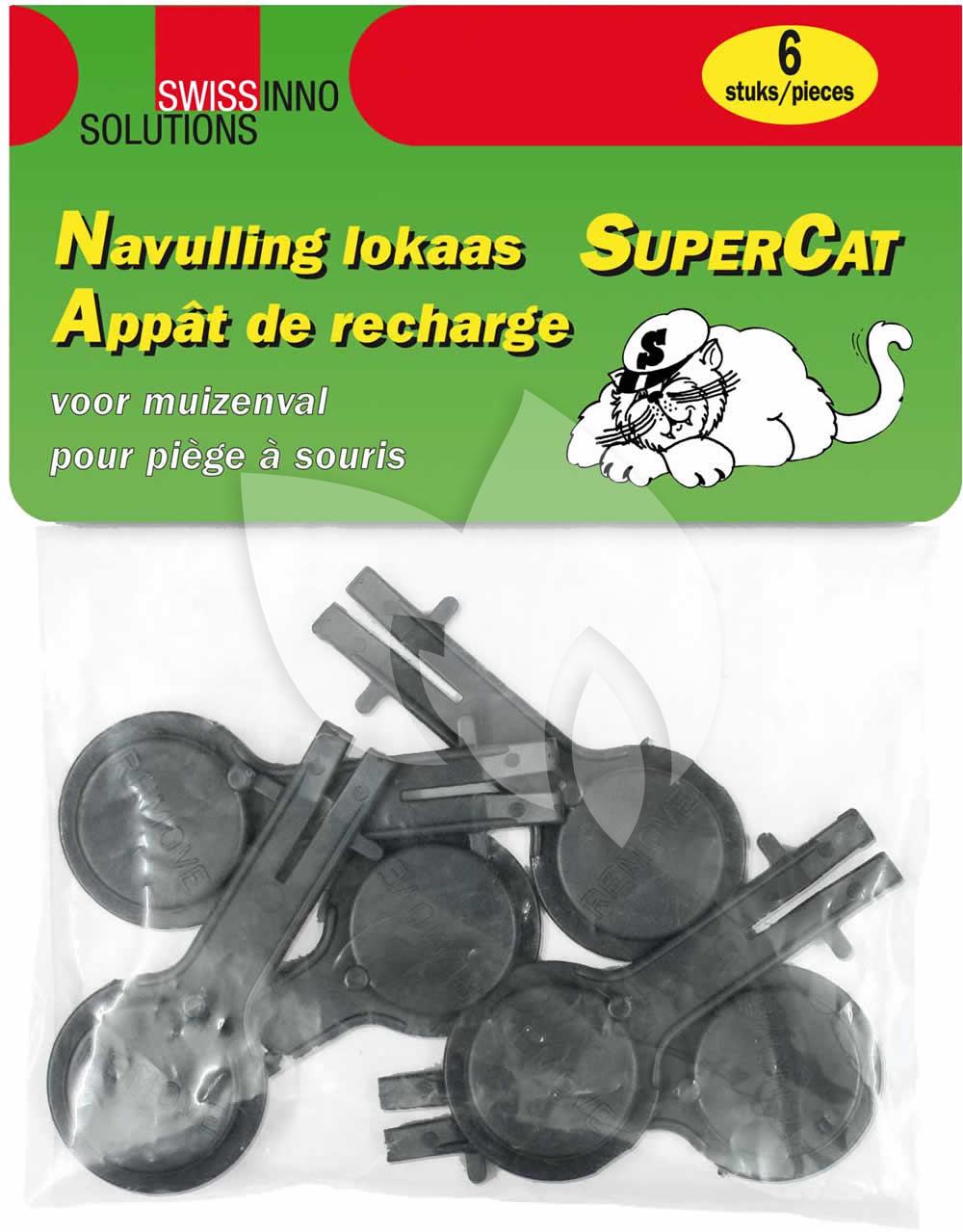 Navulling lokmiddel voor muizenval SuperCat, een natuurlijk en niet giftig lokmiddel die muizen erg aantrekkelijk vinden. De navulling wordt geleverd in een set van zes stuks.