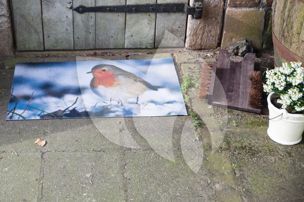 Een deurmat wordt meestal aangeschaft als een simpel en functioneel product. Met deze deurmat maakt u het product leuker! De deurmat is voorzien van een opdruk van een roodborstje in de winter. Functioneel en decoratief! De deurmat is gemaakt van gerecycled rubbergranulaat en ongeweven polyester aan de bovenzijde. De deurmat is eenvoudig schoon te maken, u kunt hem gemakkelijk afvegen of afspuiten met de tuinslang.