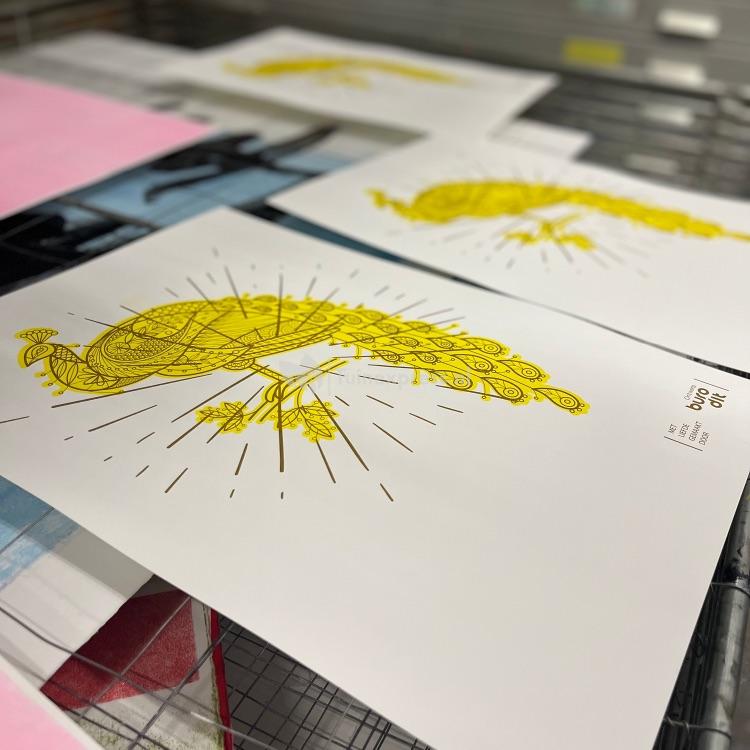 De posters worden handmatig gedrukt op een Risoprinter. Riso-druk is een heel milieuvriendelijke techniek. De inkt wordt gemaakt van duurzaam geproduceerde sojaolie en de machine verbruikt weinig energie omdat het om een koud printproces gaat. De posters worden in een gelimiteerde oplage gedrukt. Zo ontvang jij jouw unieke, eco-friendly poster van Nederlandse bodem.