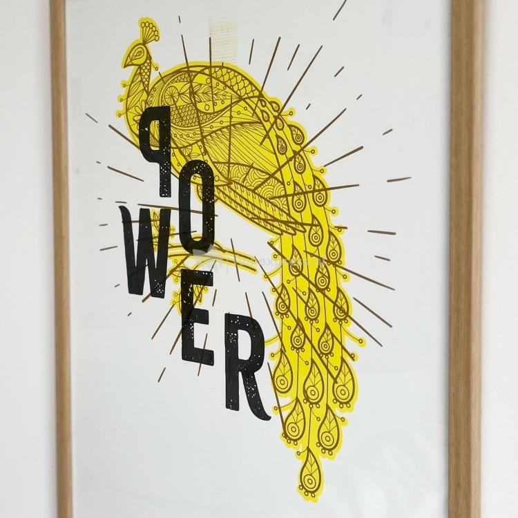 Poster tekening en quote power geel groen formaat 29,7 x 42 cm