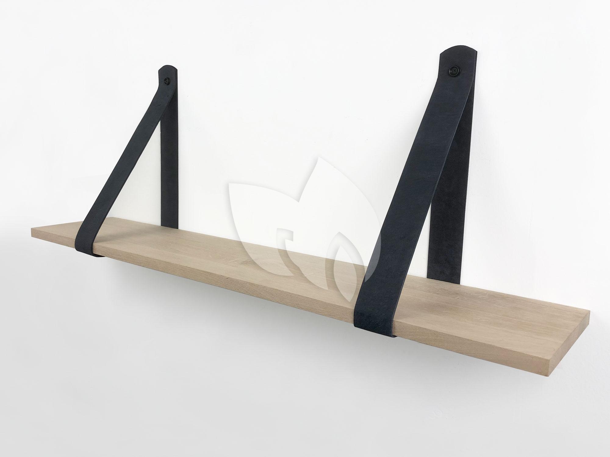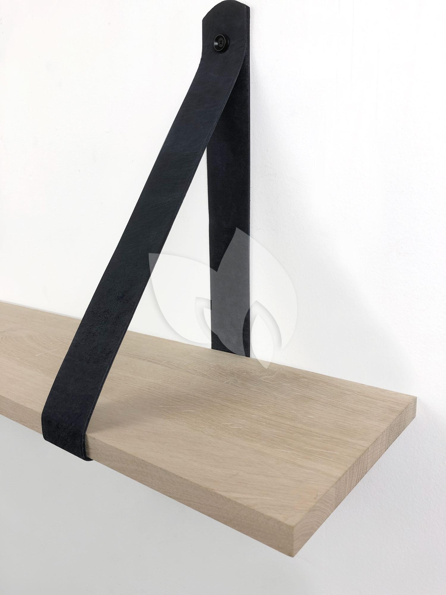 Eiken 18mm wandplank recht 60 x 20 cm inclusief leren riemen zwart